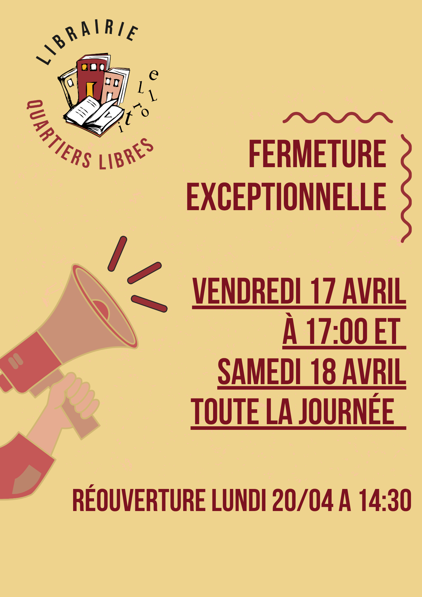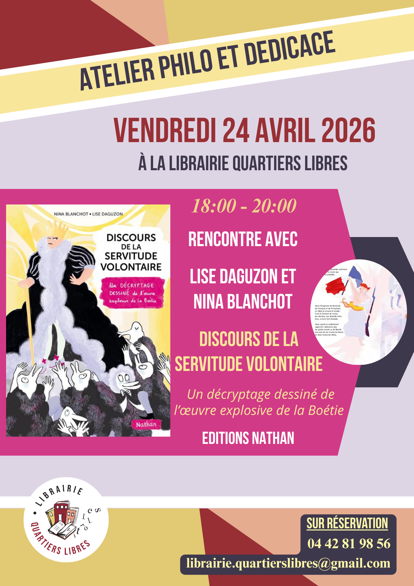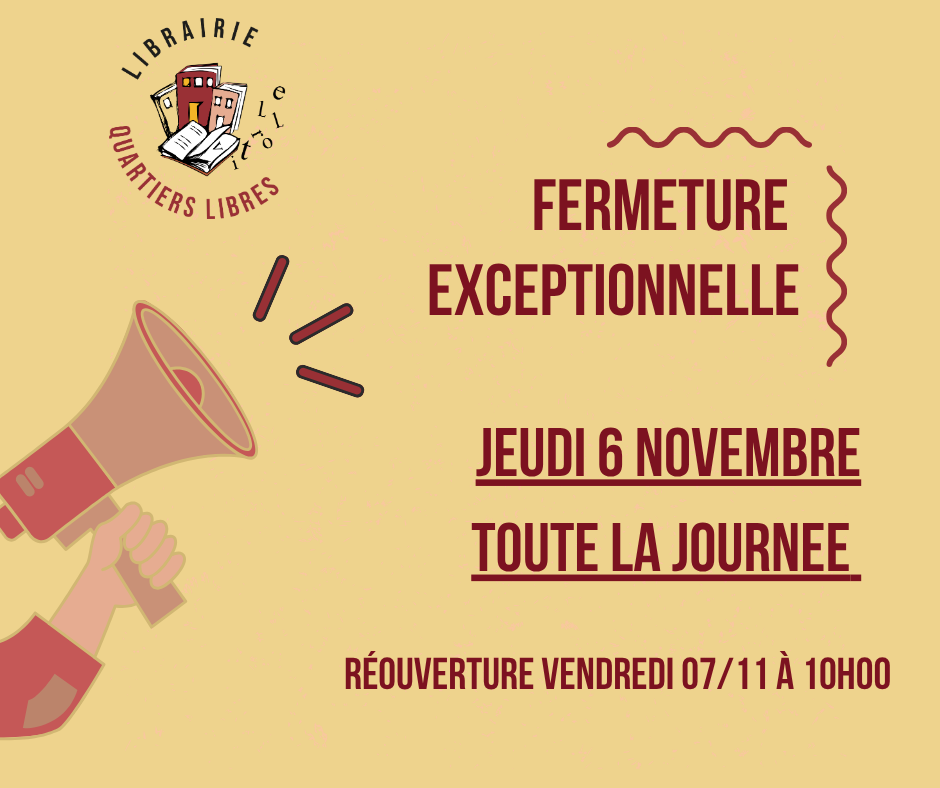 Vous pouvez également passer commande par téléphone au 04 42 81 98 56 ou via notre adresse mail contact@librairiequartierslibres.fr.