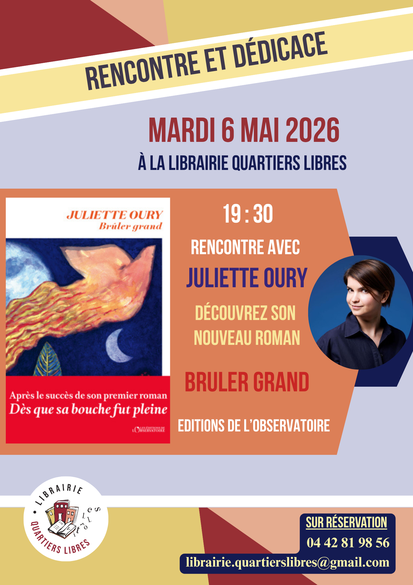 Rencontre à la librairie Quartiers libres à partir de 19h30 le mercredi 1er avril 2026, dans le cadre des « Tournées Générales » organisées par l’association Libraires du sud.